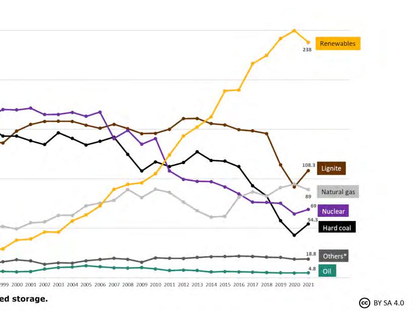 A invasão da ucrânia pela Rússia está acelerando o processo de transição energética alemã que já estava em curso (curva amarela no gráfico abaixo) , ao menos, desde 2000, quando ganhou corpo uma legislação específica para se aumentar o share de energias renováveis na sua matriz energética. A substituição de energia fóssil por energia renovável, reduzindo-se a emissão de gases do efeito estufa para se alcançar uma economia de baixo carbono é tema estratégico para a Alemanha. Com metas ousadas e alinhadas ao European Green Deal, pretende-se zerar a emissão de gases do efeito estufa até 2050 e, portanto, alcançar-se a neutralidade climática. Para tanto, a Alemanha desenvolveu uma estratégia holística de longo prazo que engloba diversos atores, como o governo federal e os governos locais, as agências reguladoras, os diversos setores econômicos e industriais, os sindicatos, os centros de P&D, as universidades e a sociedade civil. Os pilares desta transição para uma economia de baixo carbono passam pela gradual diminuição do uso de combustíveis fósseis e expansão das fontes renováveis, redução do consumo e aumento da eficiência energética, adaptação dos setores econômicos e, especialmente, cooperação global. A resposta à crise climática não será individual, mas conjunta. E São Paulo coloca-se como