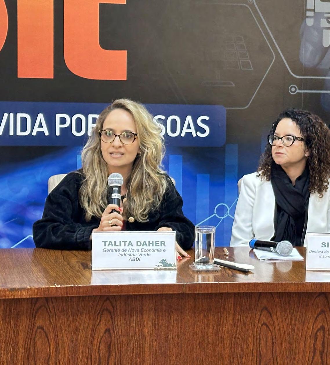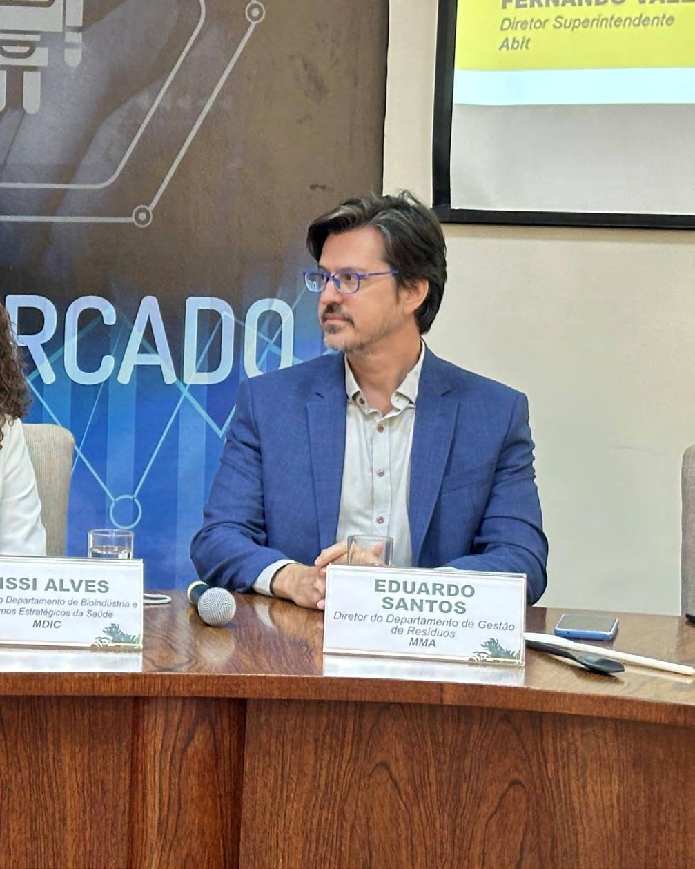 si Alves da Silva (MDIC - Ministério do Desenvolvimento, Indústria, Comércio e Serviços) e Eduardo Rocha Dias Santos (MMA - Ministério do Meio Ambiente). Uma reivindicação central dos debatedores, especialmente dos recicladores, foi a necessidade de incentivos fiscais para empresas que praticam a economia circular, como um grande acelerador do setor. A ABDI anunciou que um estudo detalhado da cadeia têxtil e de confecção está programado para este ano. O objetivo é levantar dados precisos sobre os volumes de descarte (tanto resíduos de produção quanto roupas em aterros) para subsidiar, em conjunto com o MDIC e o MMA, a elaboração de um plano de incentivo e um cronograma para o setor. Questões ligadas à Nova Indústria Brasil (NIB), que incluem e incentivam a economia circular, também foram abordadas. O plane-