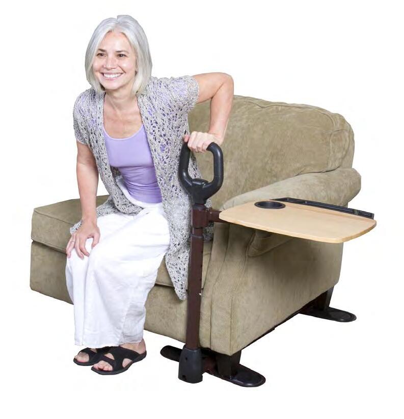A simple ergonomic couch-side handle that makes standing and sitting easy and safe, with super grip rubber pads to ensure total stability and protect floors from damage.