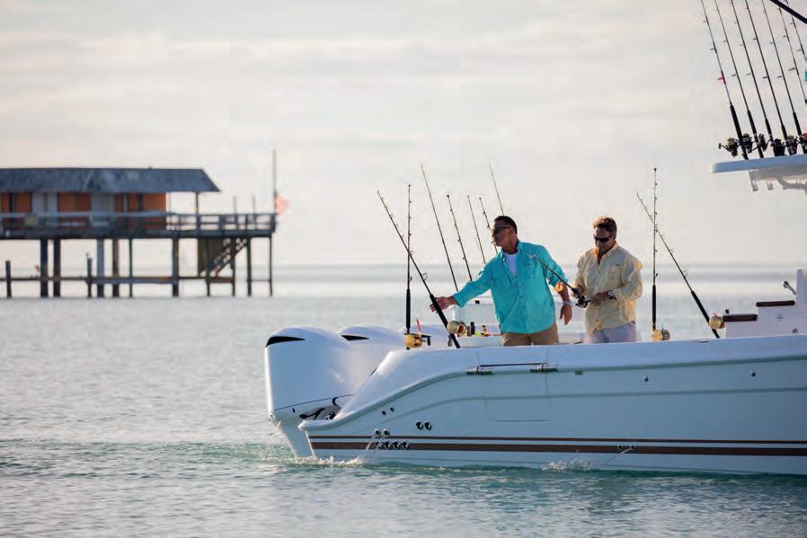 Expanding on the design of our wildly successful 407 Panacea, this customer-inspired design includes new hull and wider beam to make room for today’s larger power packages, including twin Mercury 600hp Verados. There’s also an expansive new hardtop and console, more spacious bow seating and storage, a new transom walkway/swim platform, and the elevated amenities of a reconfigured cabin – all with the one-of-a-kind customization o ered only on an Intrepid.