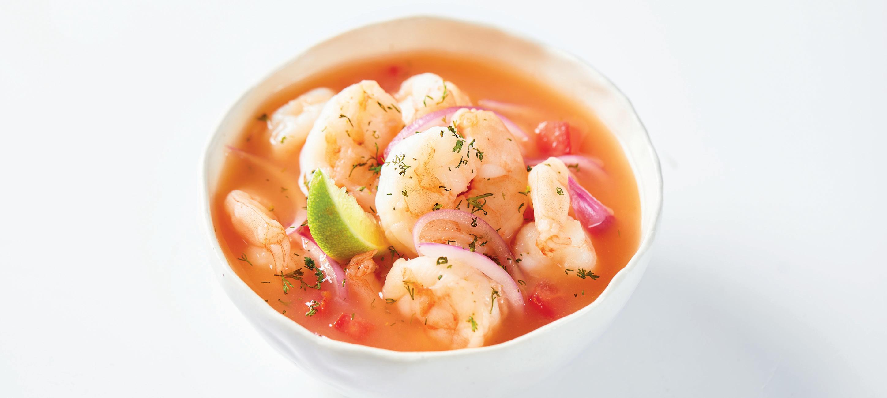 SABORES DEL MAR CARIBE: CEVICHE DE CAMARÓN CON CROCANTE DE PLÁTANO Y LECHE DE TIGRE DE CHINOLA