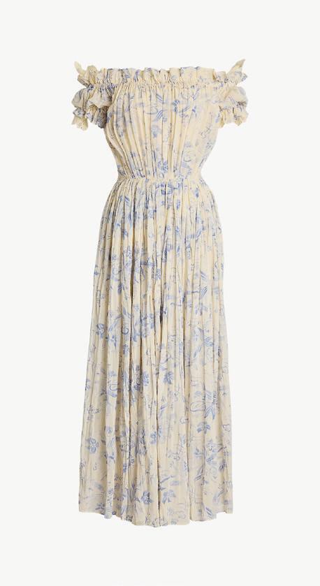 or Ralph Lauren, the Hamptons represent cherished moments and elegant simplicity—a family retreat that inspires his Spring 2025 vision: a blend of coastal elegance and timeless American style. In shades of blue and white, the collection evokes the meeting of sea and sky, with details that reflect relaxed seaside living: rustic dinners, serene sunsets, and effortless pieces like flowing dresses and crisp white trousers worn barefoot. The natural beauty of the Hamptons remains a key source of inspiration for the designer.