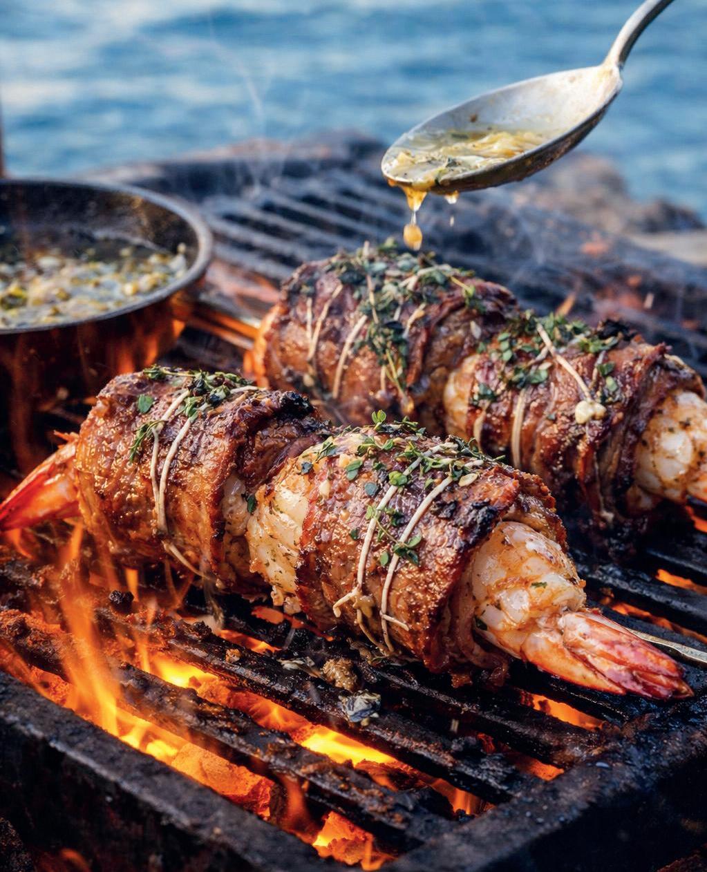 Hay combinaciones que parecen diseñadas por el océano y el fuego trabajando juntos. Estas popietas de churrasco con cola de camarón nacen de esa dualidad: tierra firme y mar profundo abrazados en un solo bocado. Prepararlas a bordo —al grill, en cast iron o incluso al horno— es un ritual que mezcla técnica y paisaje.