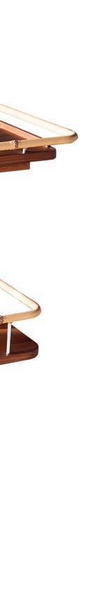 Fabricado artesanalmente en fresno termo tratado oscuro por los maestros constructores navales del astillero Robbe & Berking Classics en Flensburg, este carrito de dos niveles traslada al interior el lenguaje de cubierta de un yate clásico. Las juntas negras evocan la teca perfectamente calafateada, mientras que la franja central en alpaca aporta un brillo metálico que recuerda los herrajes pulidos al sol.