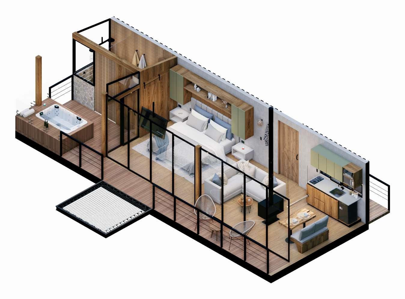 Partiendo de un concepto rústico moderno, planteamos una arquitectura minimalista, funcional y de buen gusto que hace posible la relajación, la desconexión y la comodidad en medio de la naturaleza, ofreciendo una experiencia única e inmemorable a las personas que lo habiten¨.