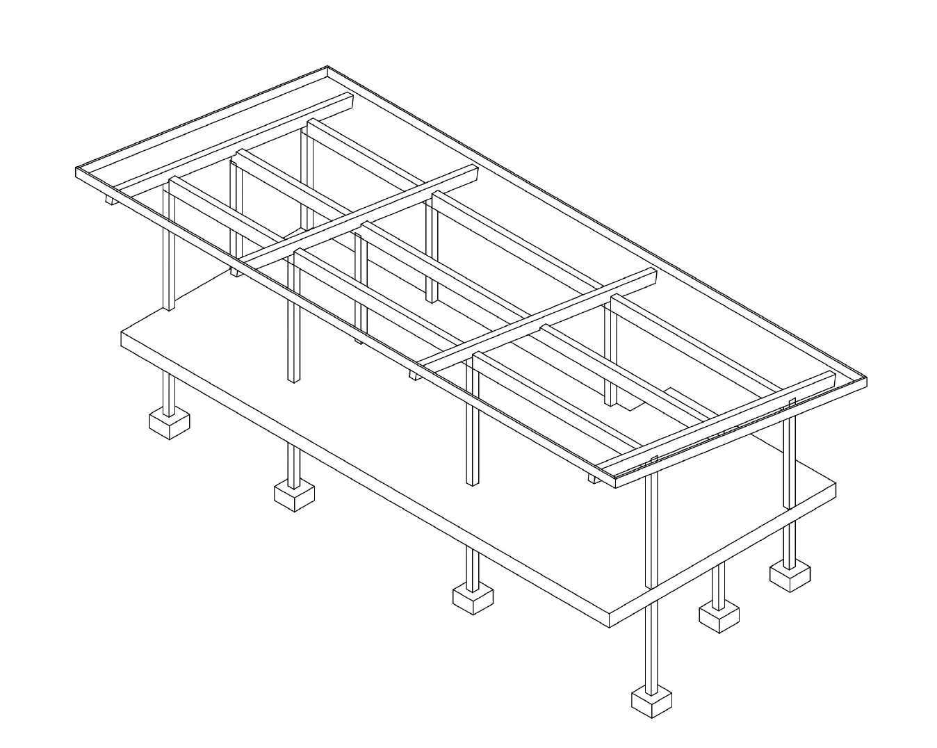 El diseño estructural de la casa empieza desde su cimentación con pilotes y zapatas en concreto. Su esqueleto, por su parte, se compone de columnas y vigas en madera que se unen formando pórticos.
