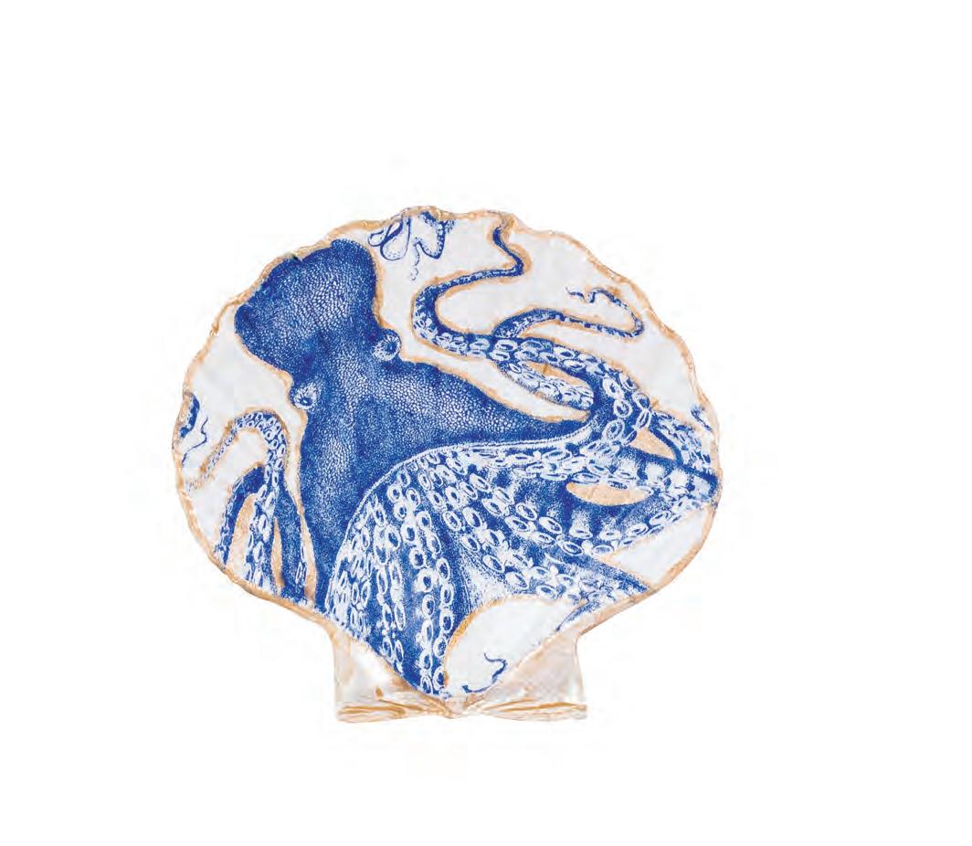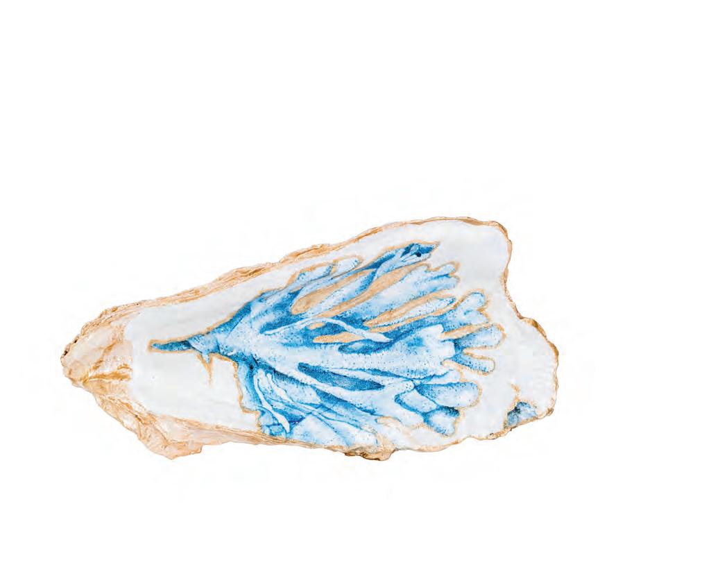 When longtime Point Loma resident Colleen Norling retired from her career as an interior designer, she wanted to create something beautiful for people to enjoy as an accent in their home or office. Each of her hand-painted, handcrafted decoupage shells is created from a real shell and a printed paper napkin. “I’m inspired by the artwork of the napkin, and I add hand painting to enhance what I see to make a unique piece of art.” Colleen explains. She uses a variety of colors and often paints shells to match the décor of an individual’s home or office, but she considers blue and white to be her go-to colors, because they remind her of the coast. The artwork on each shell is protected with clear acrylic so it can be displayed on a stand, or as a dish to hold jewelry. LEFT TO RIGHT: Octopus, $37; oyster, $47; koi fish, $27 Village Consignment | 415 S Cedros Ave, Ste 120 & 160, Solana Beach | villageconsignmentinc.com