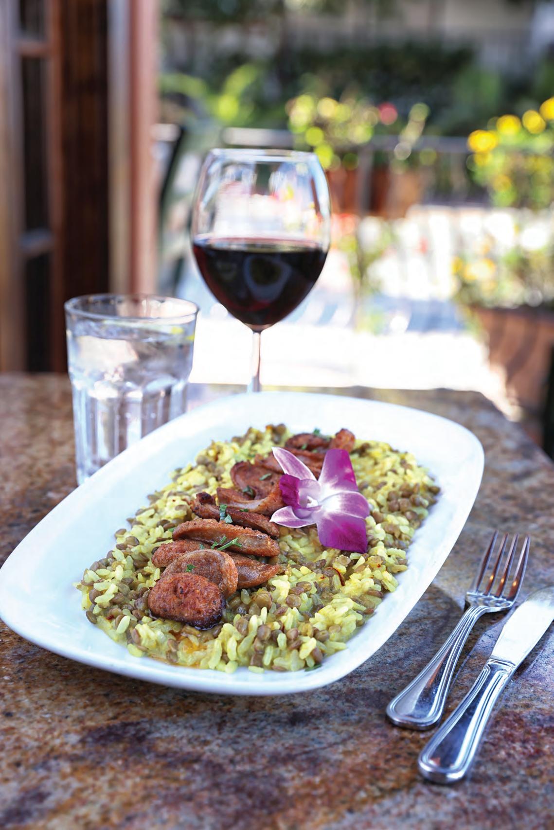 Sausages, lentils, saffron sauce, and Italian parmesan cheese atop a bed of risotto