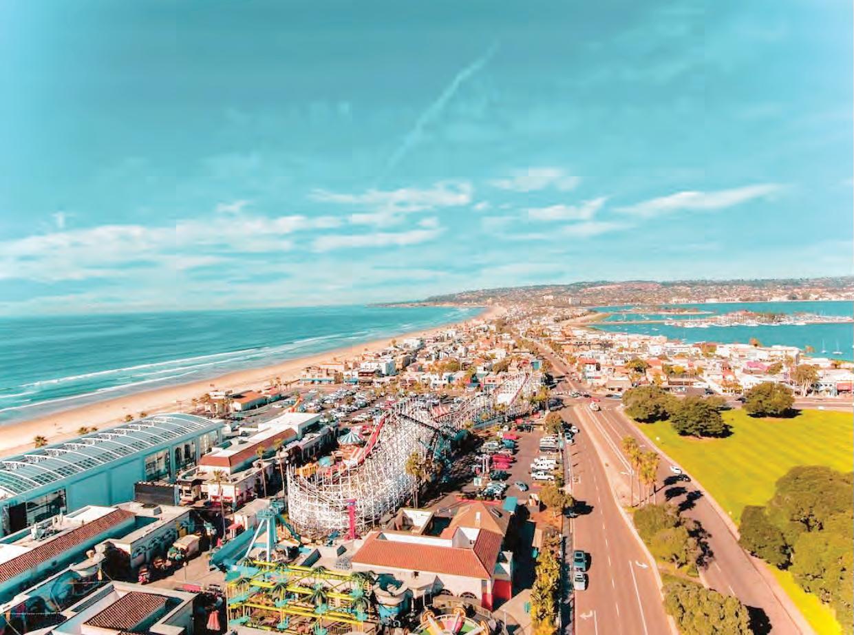 DAY at the beach, especially Mission Beach. Besides beautiful wide reaches of sand, Mission Beach has an inviting boardwalk with an array of restaurants and fun boutiques, an indoor swim park, and an outdoor amusement park. Although the ocean’s temperature makes it less inviting for a swim, it provides a beautiful backdrop for a wonderful day.