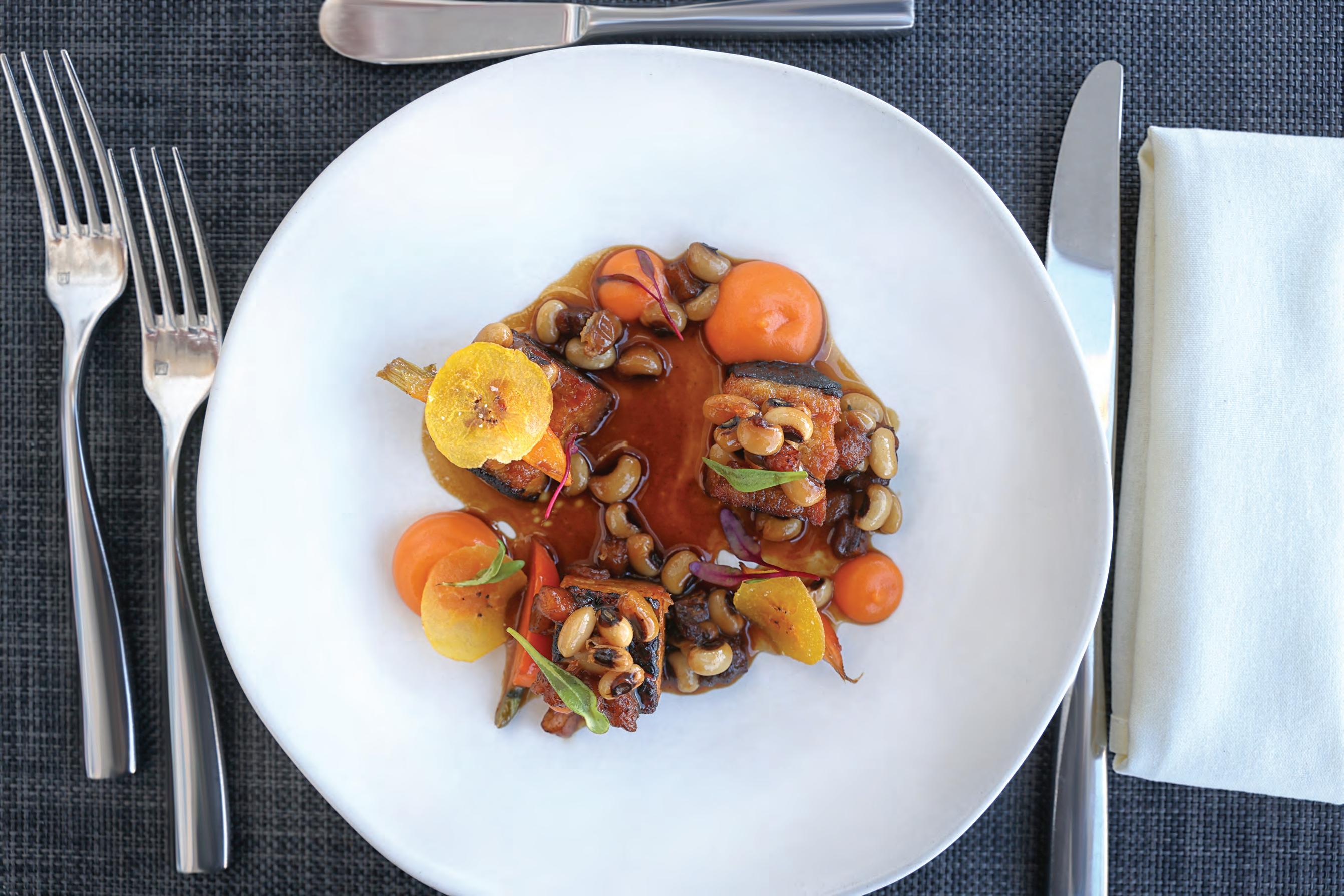 NINE-TEN Restaurant & Bar’s Jamaican Jerk Pork Bellies with Black-eyed Peas