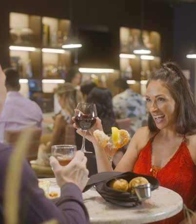 Decorated with plush booths, black and white photos of vintage cars, a glass wine cellar wall, and an outdoor patio with couches and fireplaces, Vintage 423 is a go-to location for good eats and happy hour—all year long.