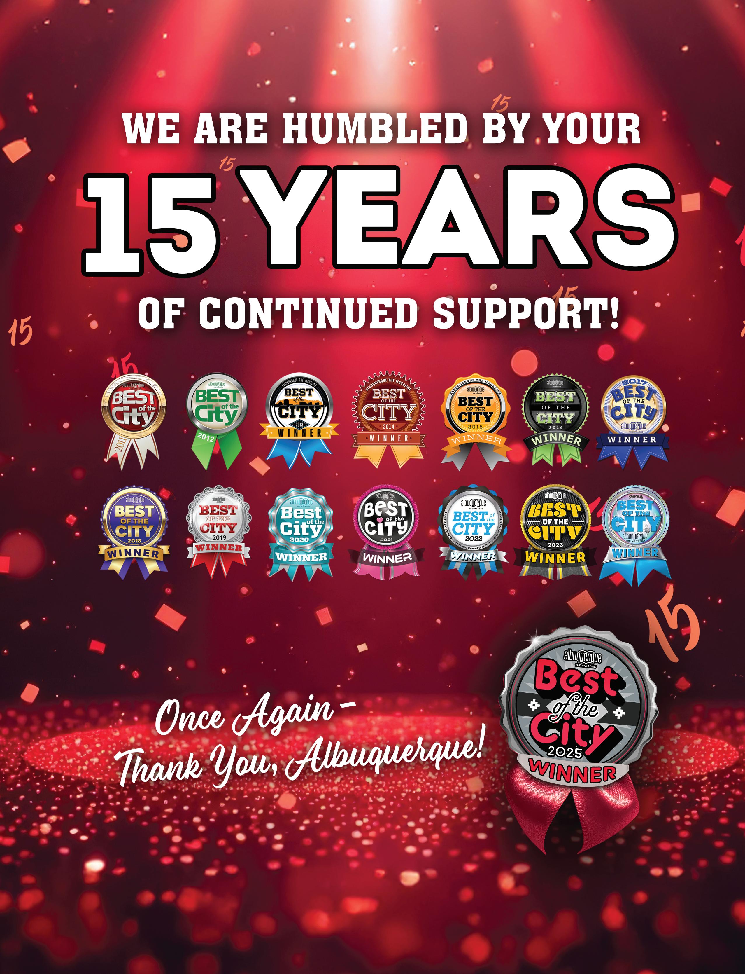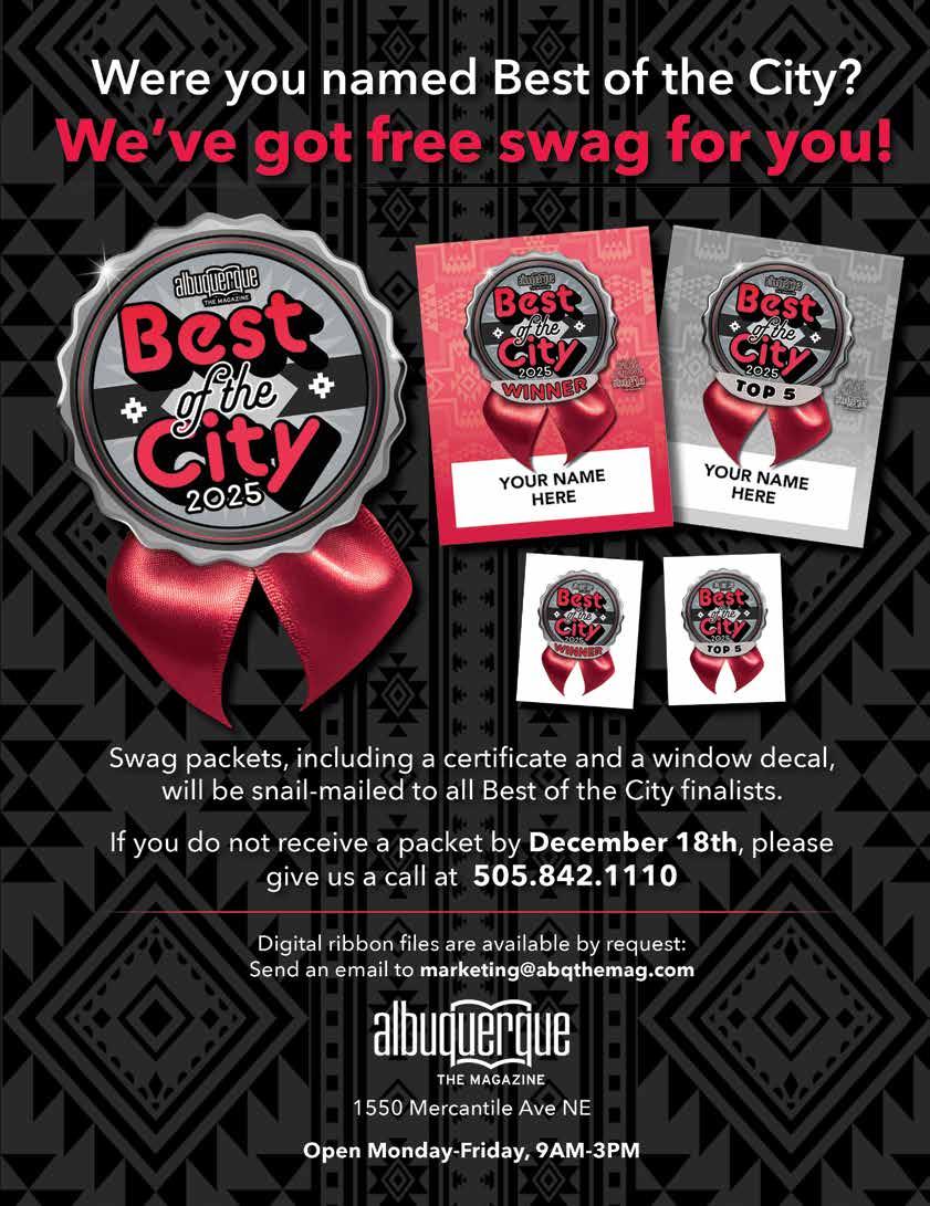 Welcome to the 21st annual Best Of The City Awards! Our feature on Albuquerque’s favorites include a whopping 344 categories of reader-voted winners, chosen by the people who live, work, dine, explore, and love this city every day. From the classics to the unexpected standouts, this year’s list is a true snapshot of what makes ABQ shine.