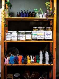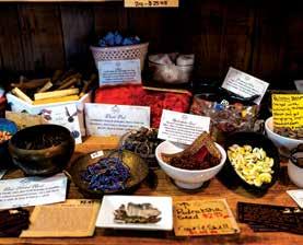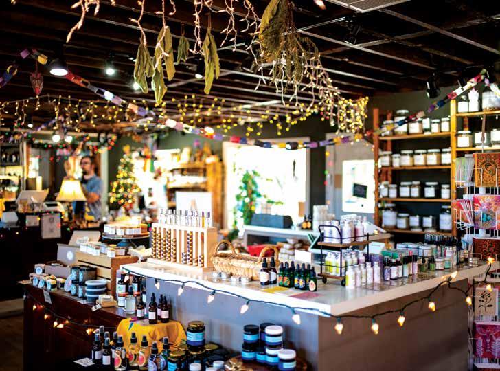 Today, this herbal-meets-metaphysical store has taken root in its own brick-andmortar home: a centuries-old barn that used to be a part of the Blueher family. Meanwhile, Kamden Cornell, the shop’s longest standing employee and now manager, leader herbalist, and head sorcerer, has been with the enterprise since essen-