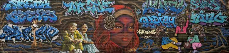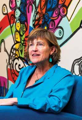 Since then, she has created a wide array of murals, both inside and out-of-doors, for numerous local businesses—from Duran Central Pharmacy to Bookworks.