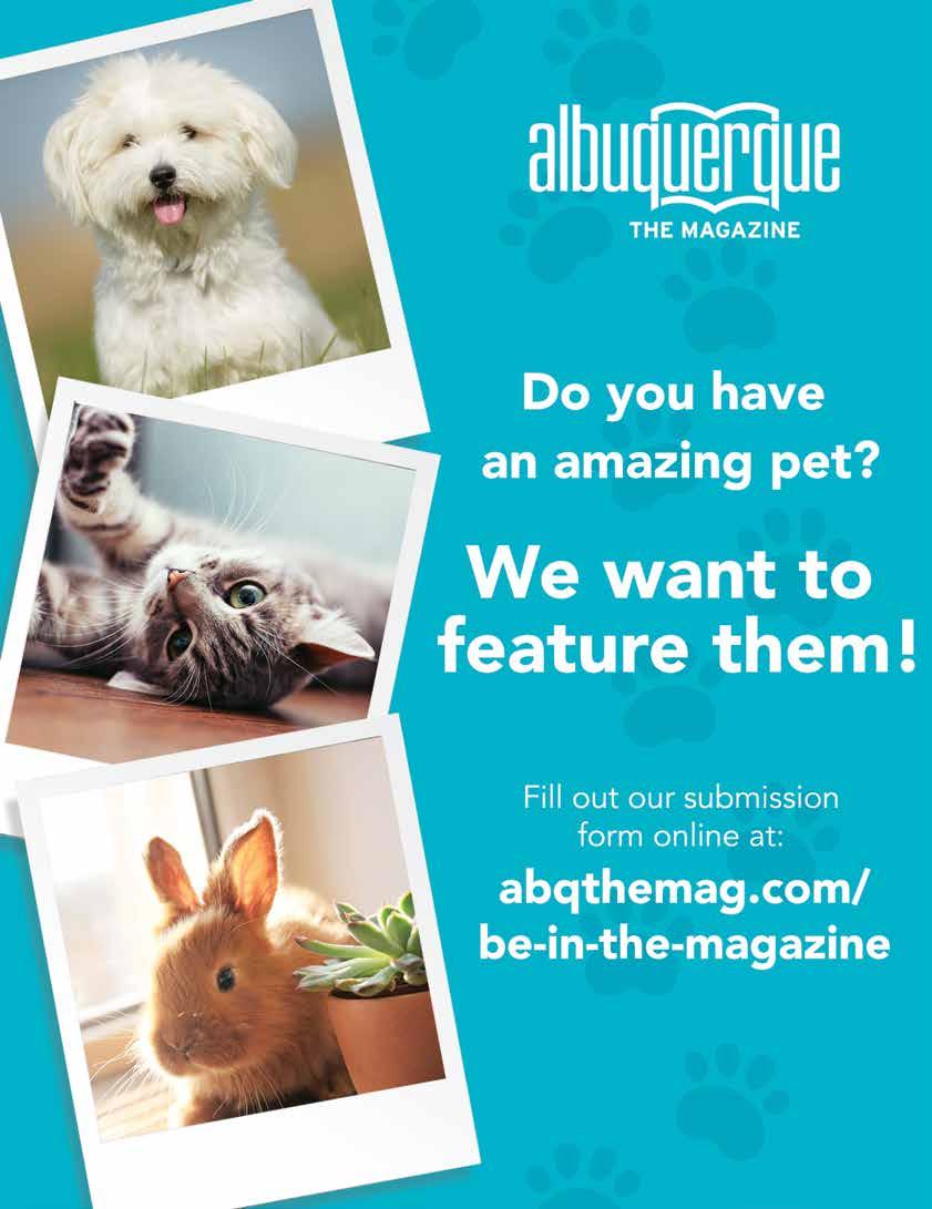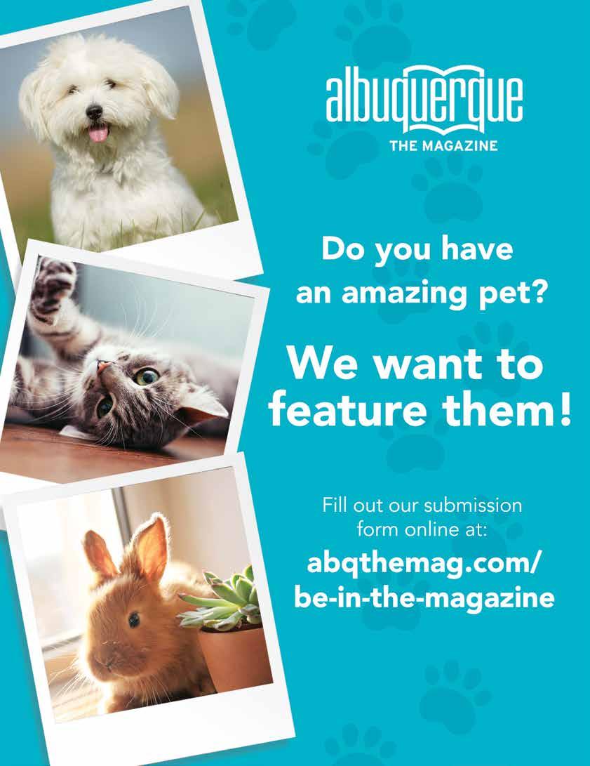 Is your pet ATM’s next Pet of the Month? Send a photo and short story about why you think your pet belongs in these pages to petofthemonth@abqthemag.com.
