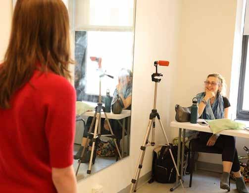 “It’s fun because, for half of [the mural,] it’s black and white or sepia-toned, like an old photo,” she says. “And then, instead of using painting and shading, I use dots—little stippling—so it looks like an etching. And I’ve not done that on a mural before.”