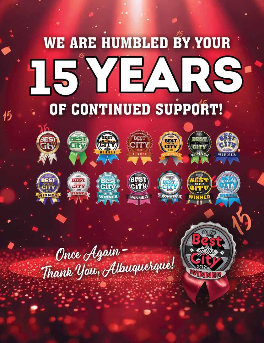 Albuquerque The Magazine (ISSN 1936-4350) is published monthly except January by Albuquerque The Media Corporation, 1550 Mercantile Ave. NE, Top Floor, Albuquerque, NM 87107. Periodicals Postage Paid at Albuquerque, NM 87101, and at additional mailing offices.