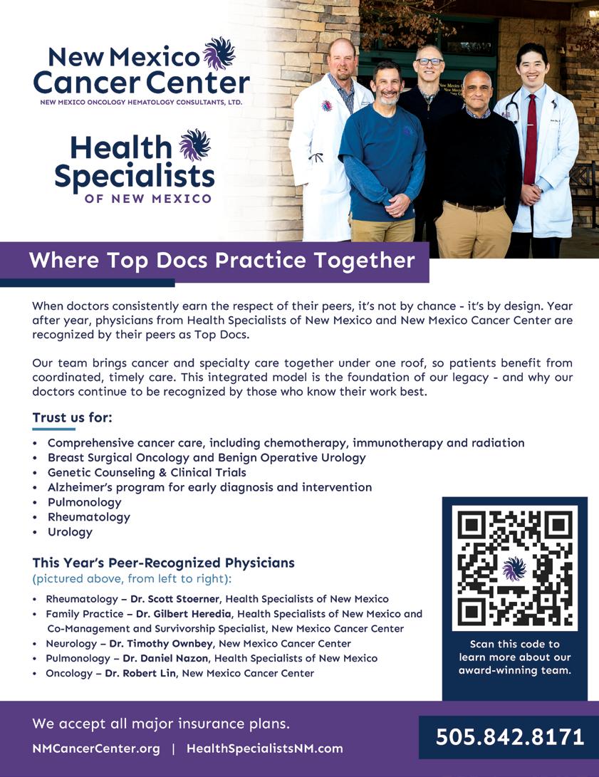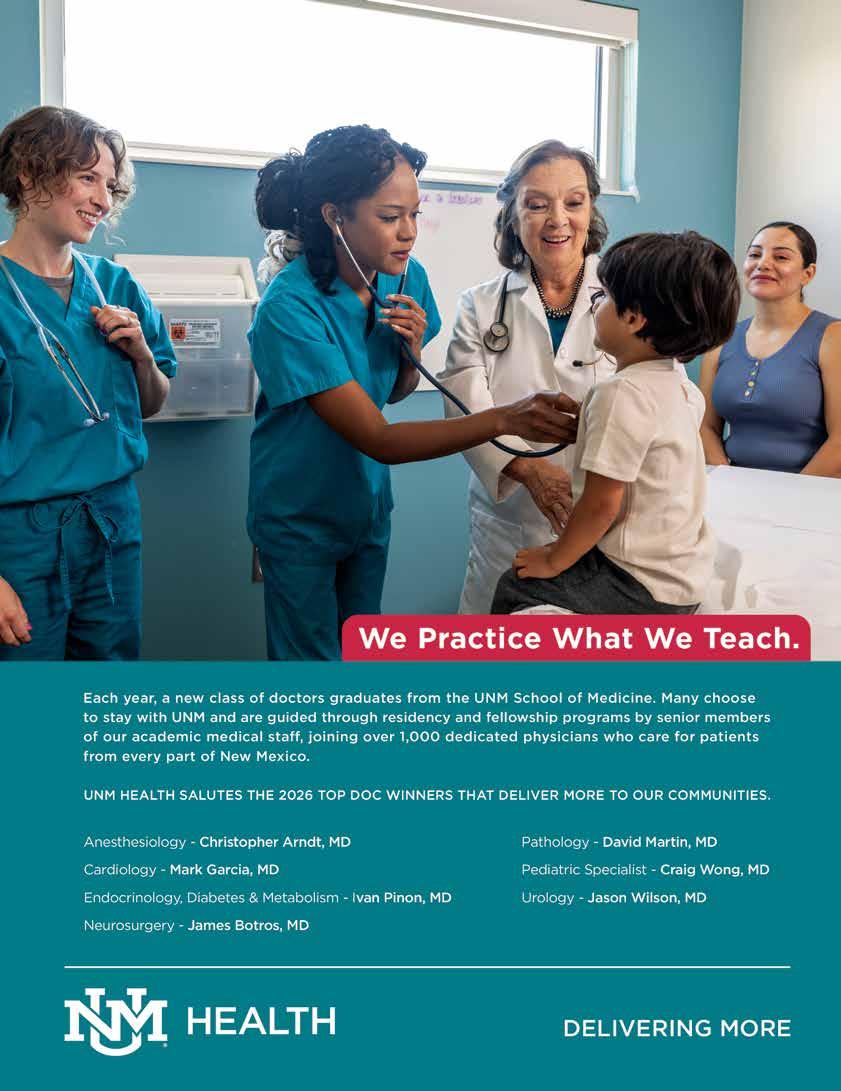 Medicine is moving faster than ever before—and in Albuquerque, innovation meets compassion at every turn. This year, we look ahead to the future of medicine, spotlighting the doctors—and the advanced practice providers—who are redefining care through cutting-edge tech, forward-thinking research, and a renewed focus on patient-centered approaches. From precision diagnostics and minimally invasive treatments to AI-assisted care that skirts science fiction, these doctors aren’t just keeping pace with change—they’re shaping what’s next. Meet the leaders advancing health care today while buliding a smarter, more human tomorrrow.