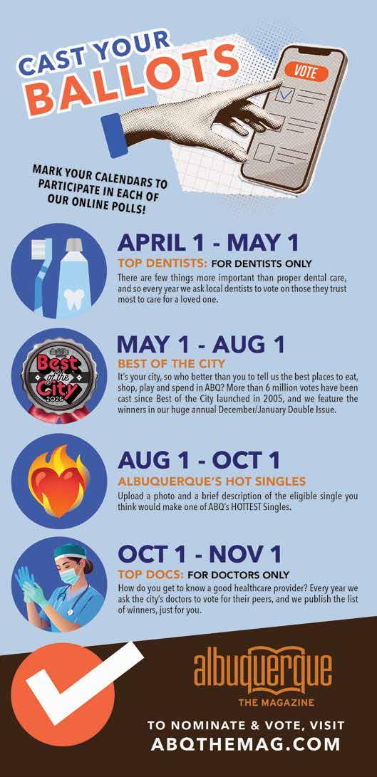 POSTMASTER: Send address changes to Albuquerque The Magazine, 1550 Mercantile Ave. NE, Top Floor, Albuquerque, NM 87107.