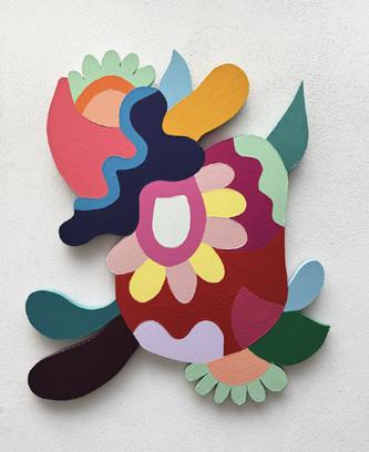 Al crear un espacio donde dialogan varios medios con un lenguaje común, que además se aluden mutuamente, Urpí construye un pequeño cosmos –uno más dentro del universo mayor de su obra que ha venido tejiendo– en el que, como dice el aforismo, “el todo es más que la suma de sus partes”. Dino resignifica colores pasteles y vibrantes, textiles con vidas pasadas y símbolos de su imaginario colectivo. Esta libertad de creación remite al juego del “niño” según Freud, quien, como cita la académica Ellen Handler Spitz, “crea un mundo propio o, más precisamente, reorganiza las cosas en su mundo y las ordena de una manera nueva que le resulta más agradable”.5 En el universo de Urpí, los límites entre el sujeto y el objeto se difuminan.