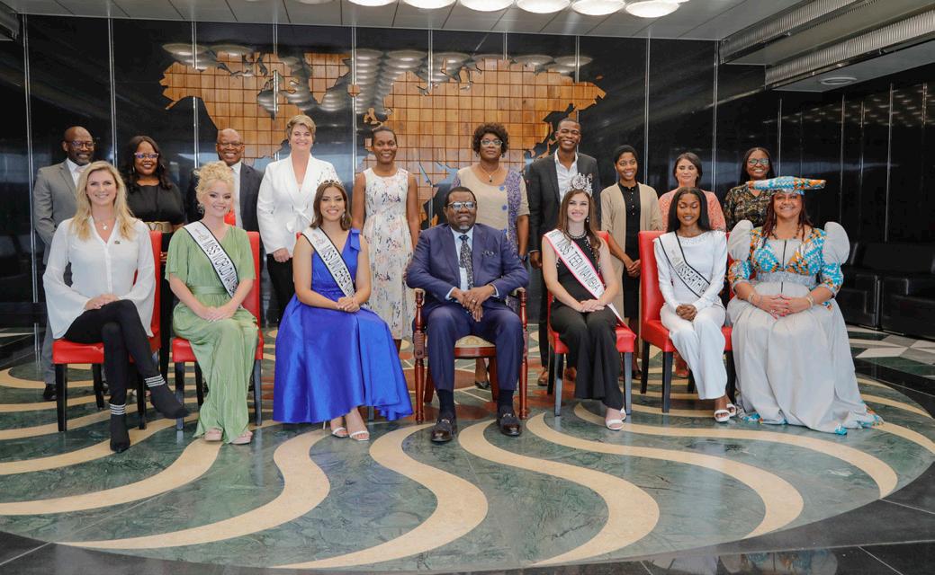The Namibia Beauty Pageant Organising Committee briefing President Geingob on the work that they have undertake.