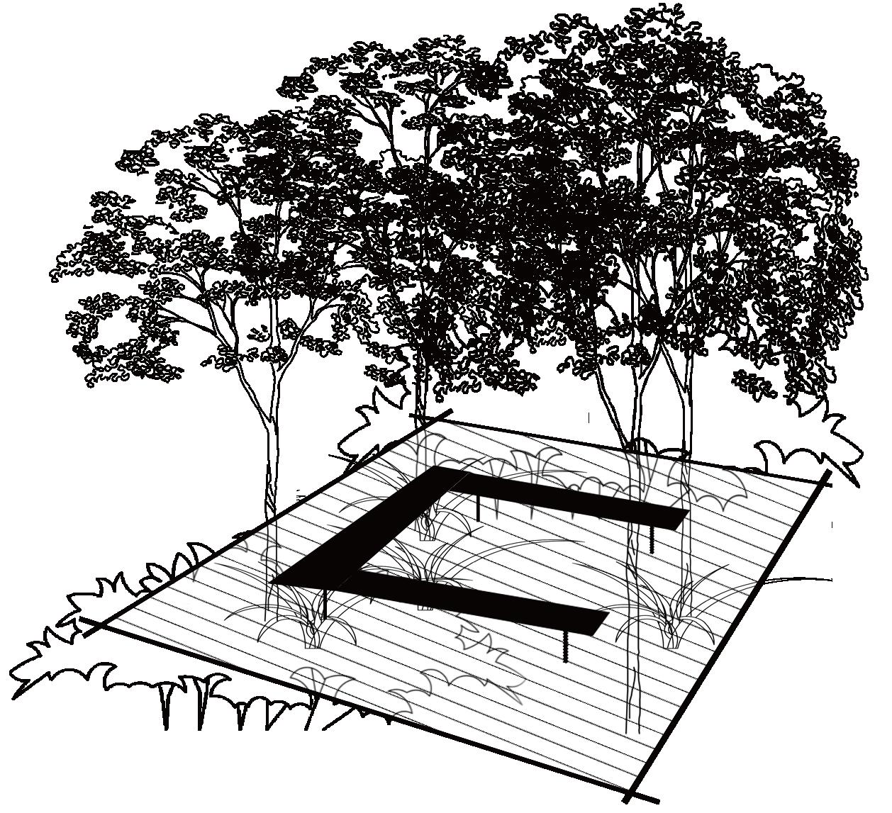 Refuge defines the essence of this environment, shaped by large shrubs and mangrove vegetation. Their low-hanging branches create a gentle sense of enclosure and psychological safety, nurturing a quiet, introspective atmosphere. A single bench is thoughtfully placed to invite users to slow down and engage with the space in their own time, encouraging personal reflection and emotional restoration.