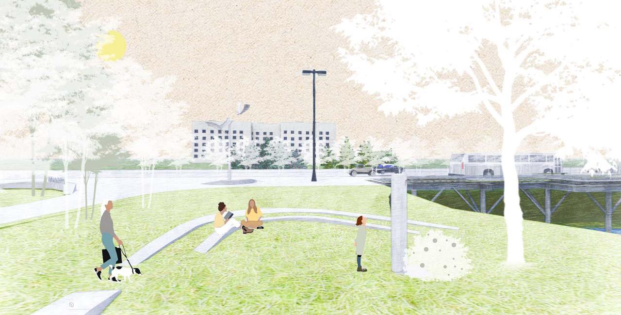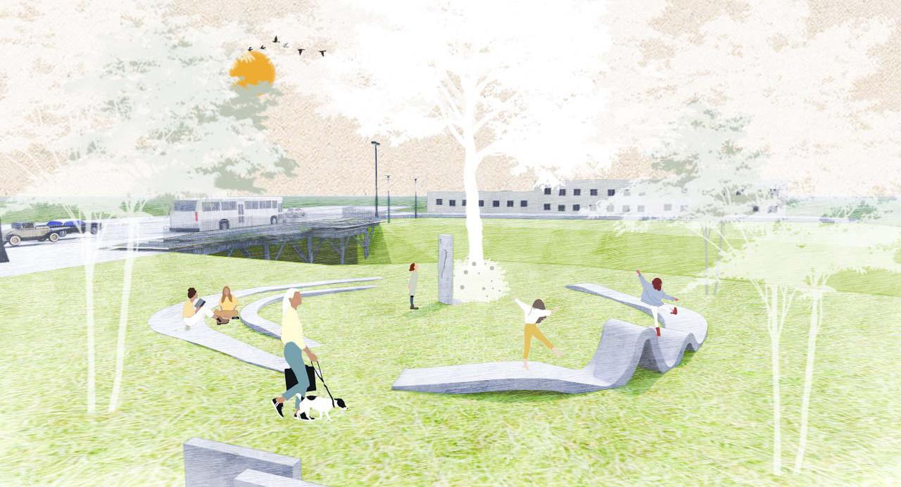 2.Bringing people together: A multifunctional landscape ring designed to welcome and engage visitors across different age groups."