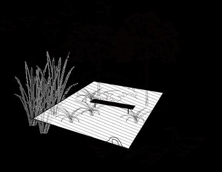 Refuge serves as the defining dimension of this environment, characterized by large shrubs and mangrove vegetation. The low-lying branches create a sense of enclosure and psychological security, fostering a protected and introspective atmosphere. Single benche is set to encourage users to engage with the