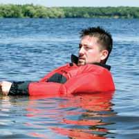 Disadvantages: Wearer may have to tilt head back to avoid going face-down. In rough water, a wearer’s face may often be covered by waves. Not for extended survival in rough water.