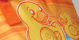 Patented design for children less than 30 pounds, featuring an elasticized leg strap and a unique collar design which provides improved head support.