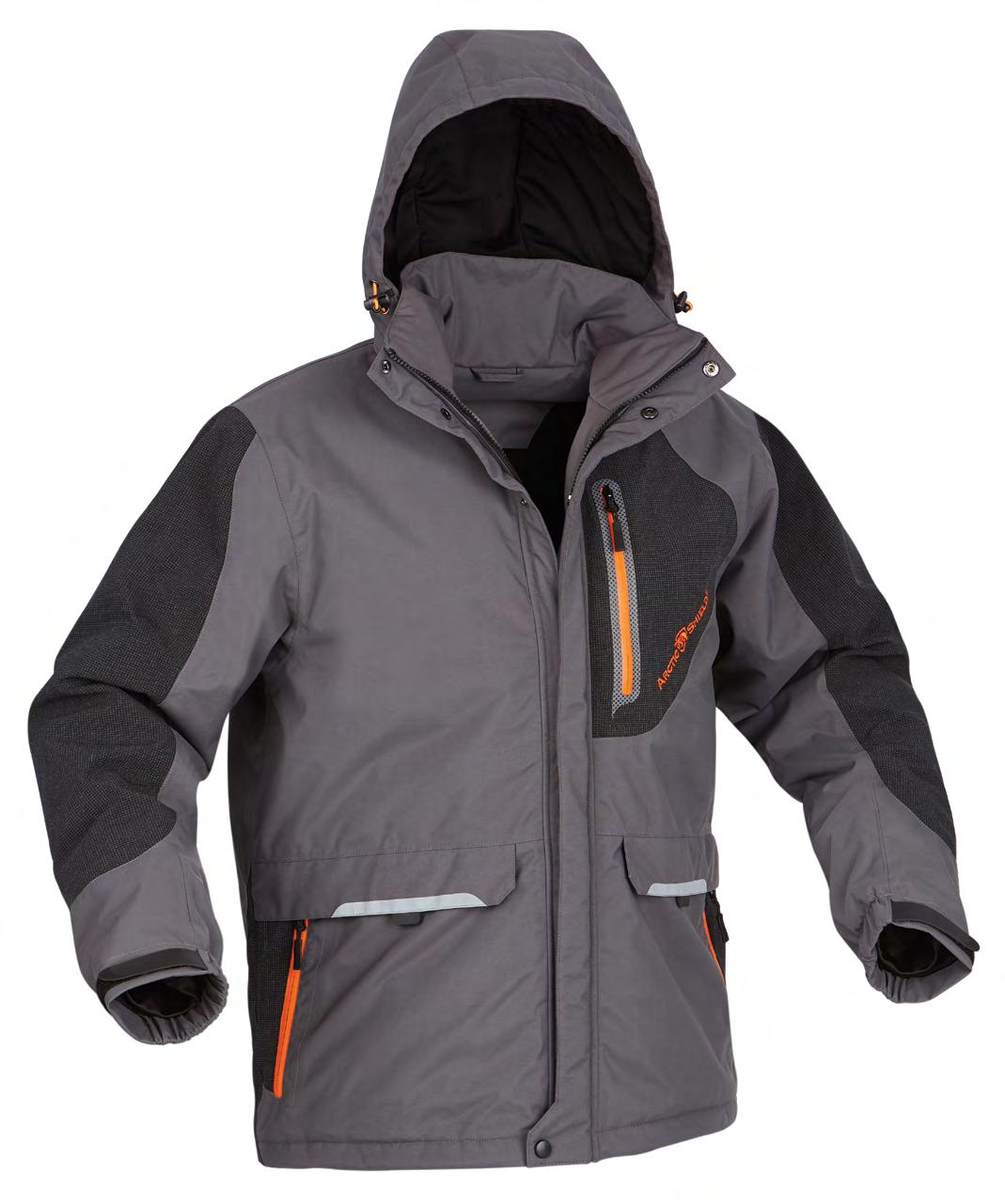 . Quiet bur-free micro-suede outershell . Polyester inner lining . Waterproof . Windproof . Retain™ heat retention technology