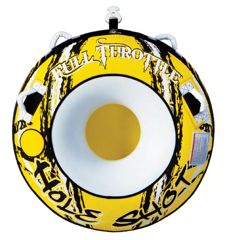 All Full Throttle towable tubes are equipped with a convenient Boston Valve allowing for quick and easy inflation and deflation. This one-way valve with two caps allows air in using the top cap, but won’t let any air escape. After an action-packed day on the water simply remove both caps to let all the air out.