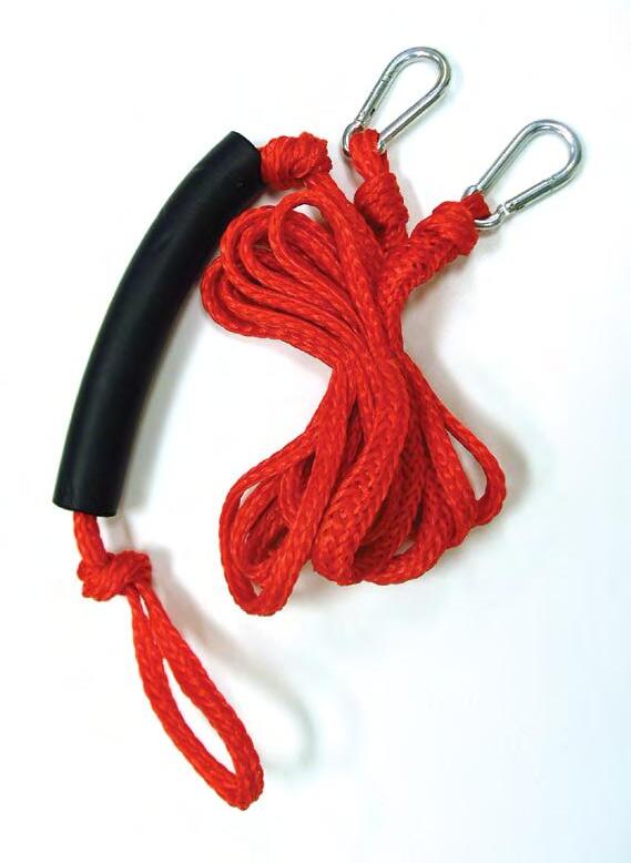 • Heavy-duty sectional wakeboard rope with comfortable handle, smaller quick grab handle, and rope keeper
