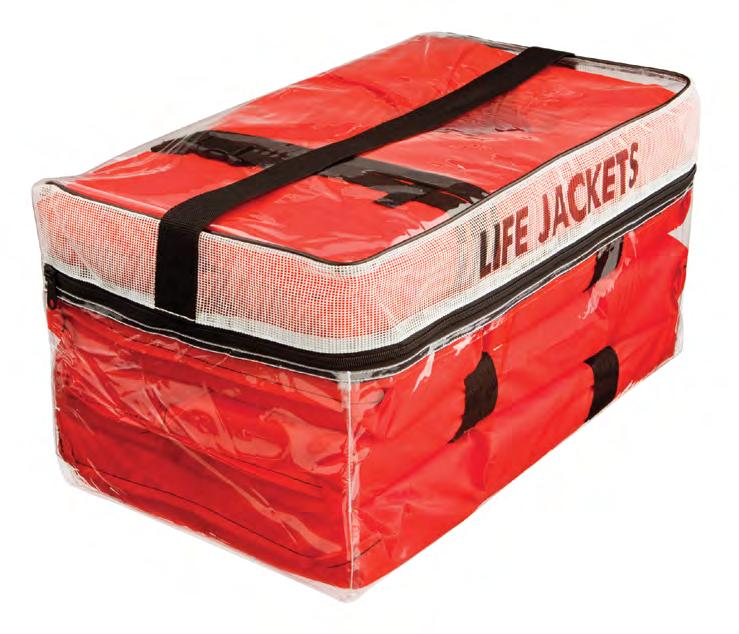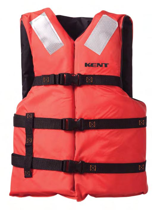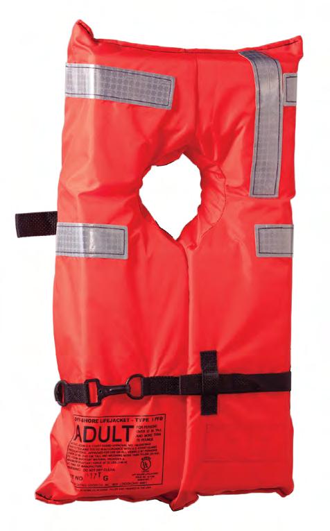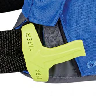 • Manually inflates when the wearer pulls the “jerk to inflate” handle; equipped with back up oral inflation