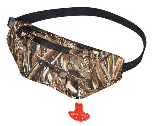 • Unique design allows it to be worn flat for use in a boat or kayak; belt pack can still be deployed in seconds