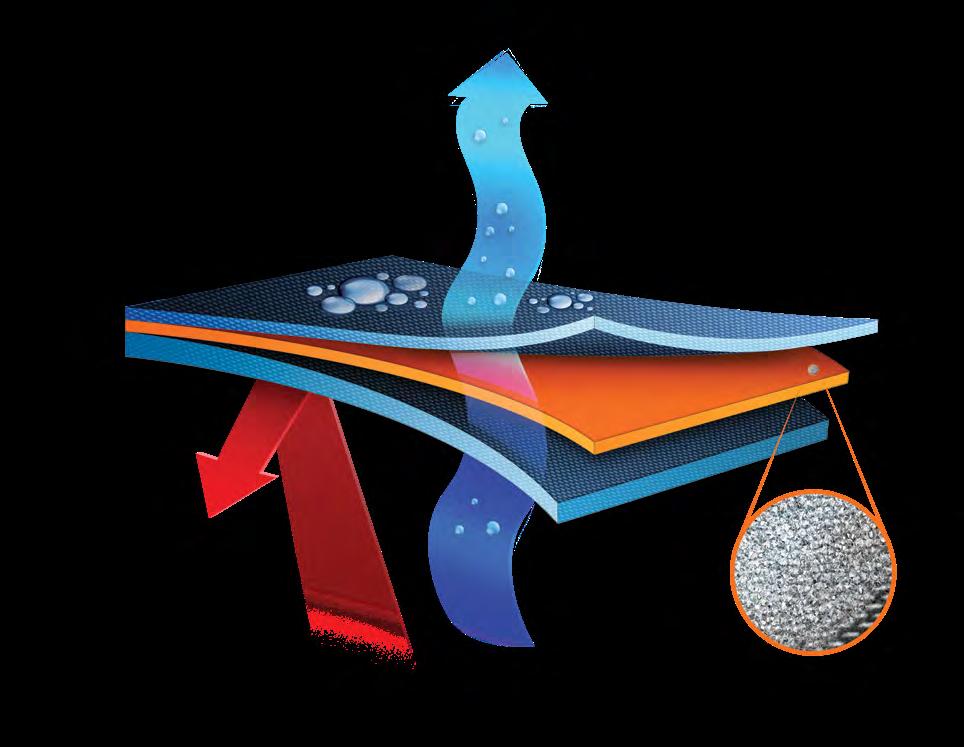 Retain™ Active technology utilizes nano-sized metallic powder formulated into the apparel laminate. This thin layer of thermal insulation efficiently retains body heat and delivers more than 20% added warmth back to the body. It’s breathable and wicks moisture away from the body in various climates.
