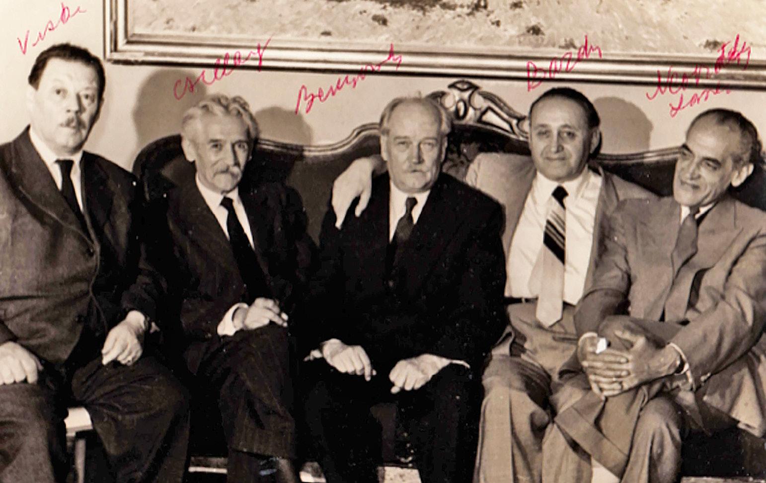 Group photo of Thibaud Bárdy (second from right) with (left to right) János Viski, József Csillag, István Benyovszky, and László Neogrády.