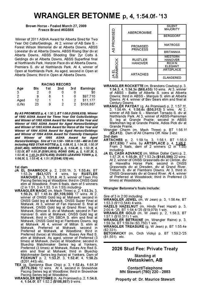 Themostroyally-bredstalliontoeverstandinWesternCanada...hisdamis themultipleDanPatchAwardwinner,WorldlyBeauty($2.1million).