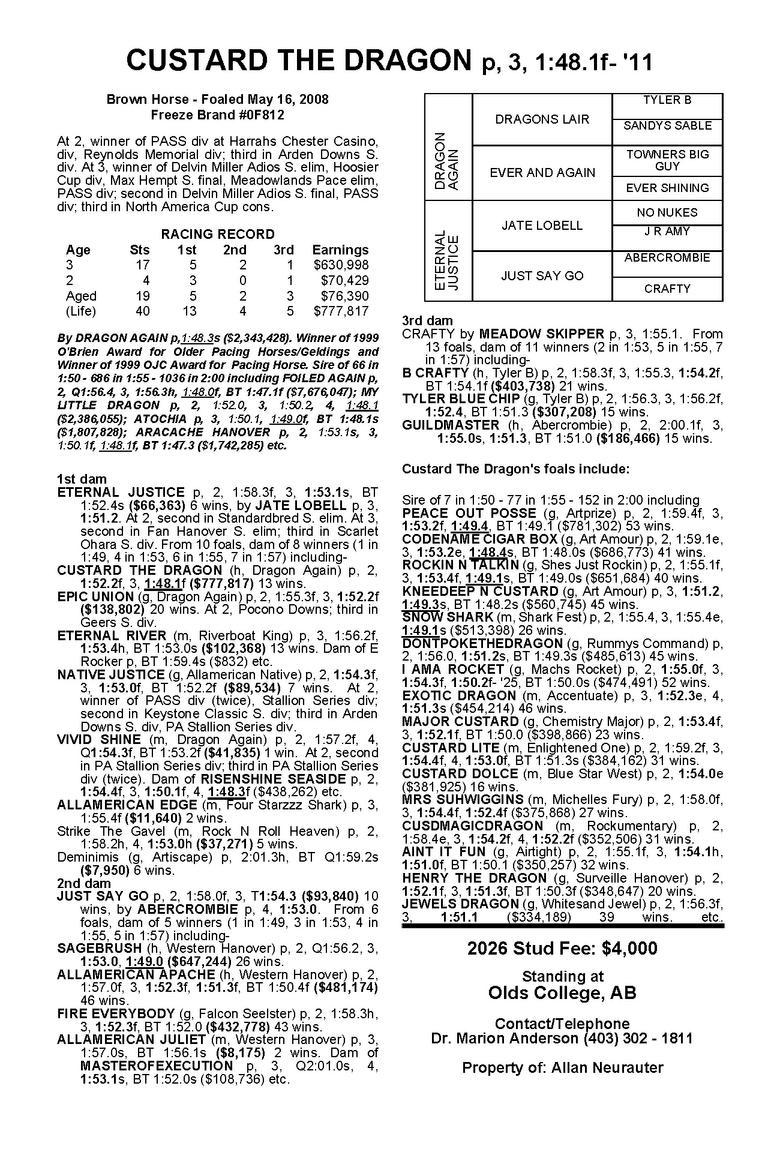 2026STUDFEE:$1,750 (ASKABOUTOURMULTIPLEMAREDISCOUNT) CONTACT:ALNEURAUTER(403)607-5679|custardthedragon.com