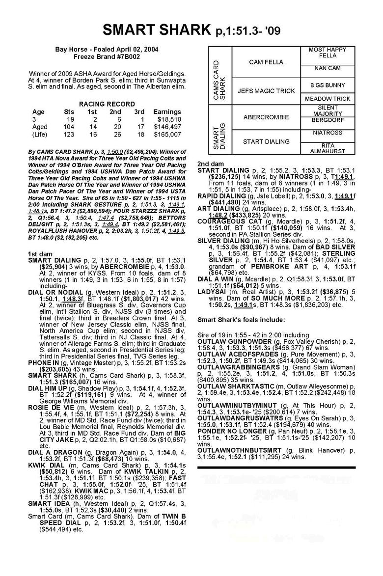 Outofdamwith$2Milliontotal earnersincludingPirouette Hanover,damofNijinsky(1:47.3, $2,040,117)