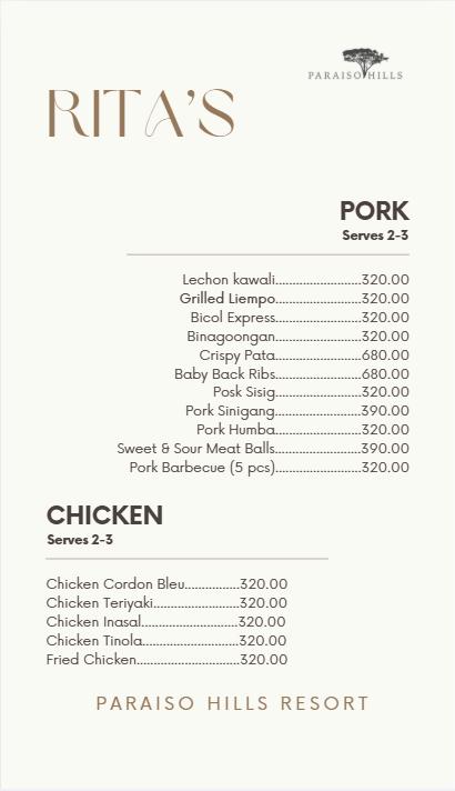 PARAISO HILLS RESORT - MENU