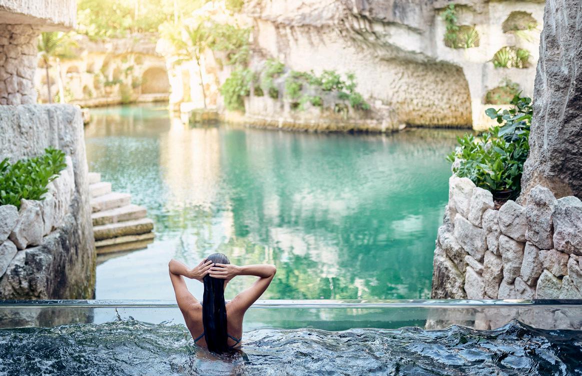 Todos encontrarán su lugar especial en la in finity pool, alberca central y en el exclusivo spa con nueve cabinas, circuito de hidrote rapia, vapor, sauna, salón de belleza, bridal