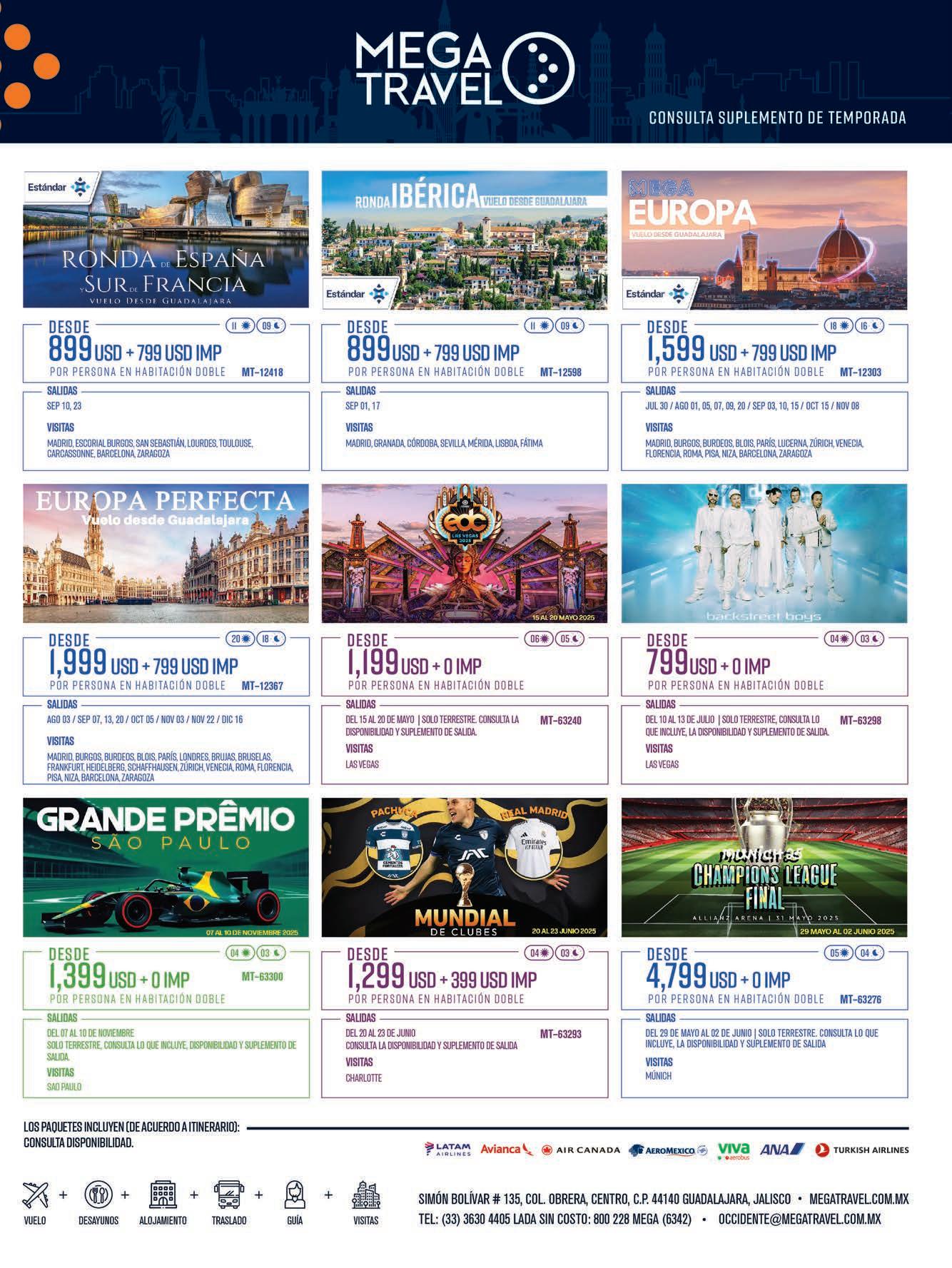 Debido a su 20 aniversario, Operadora Sierra Madre tendrá disponible bloqueo saliendo desde Guadalajara. Este recorrido visitará en los mejores lugares que Europa puede ofrecer.