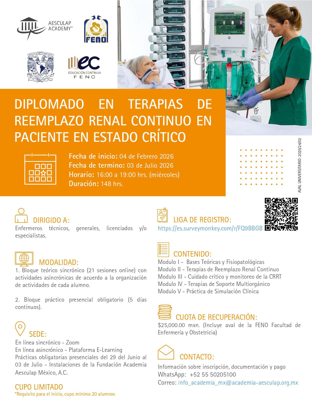 ▪ Diplomado en Terapias de Reemplazo Renal Continuo en Paciente en Estado Crítico