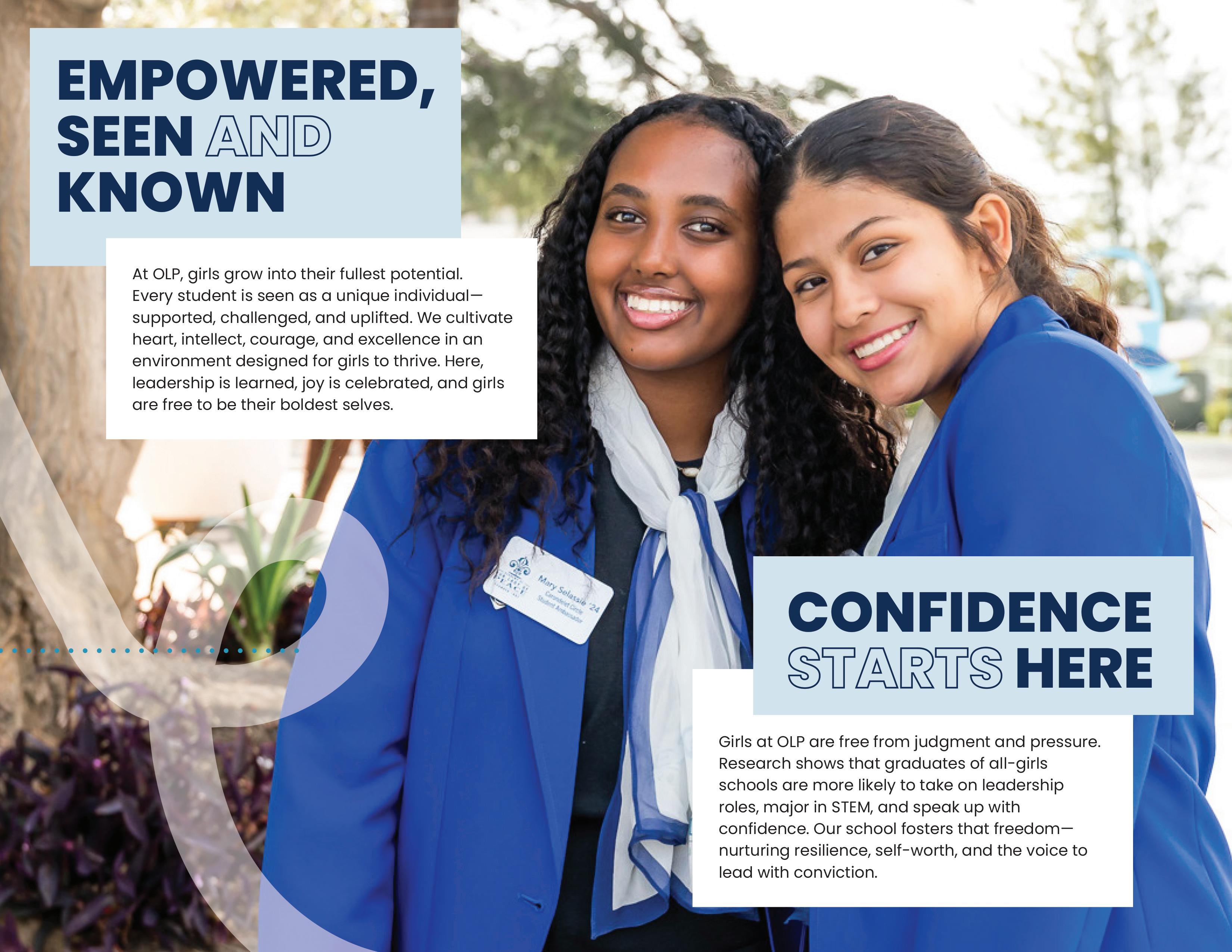 Belonging is more than inclusion—it’s the heartbeat of the OLP experience. Here, girls from every background find a place where they are accepted, celebrated, and empowered to be exactly who they are. Whether Catholic or of another faith, introverted or outgoing, future engineer or future artist—every student contributes to and benefits from the strength of our diverse, mission-driven community. At OLP, you don’t just fit in. You find your place. You find your people.