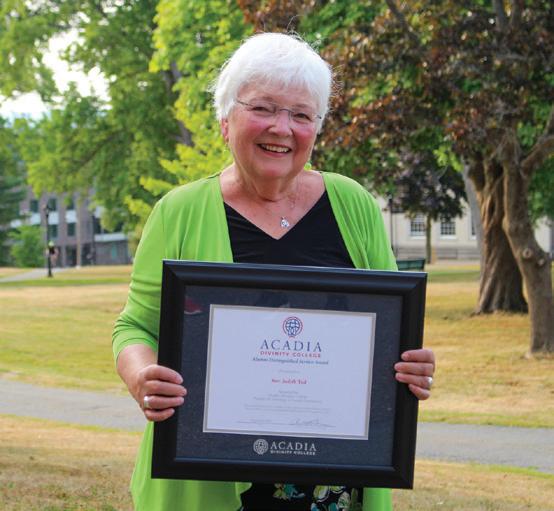 F RIDAY, AUGUST 8, 2025, Acadia Divinity College presented the 2025 Alumni Distinguished Service Award to Rev. Judith Tod. Judith has has embodied humility, collaboration, and a steadfast faith in the God who calls and equips.