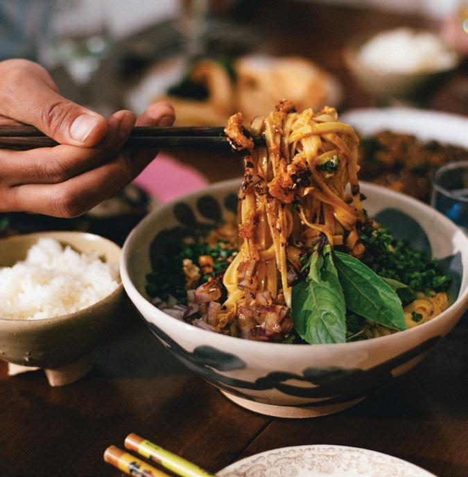 include southern classics like roast beef served with mac n cheese and green beans. More creative creations frequently jump in the rotation, like “DO MEIN,” vegetable lo mein topped with pit-smoked ribs in a sweet and tangy Asian BBQ sauce.