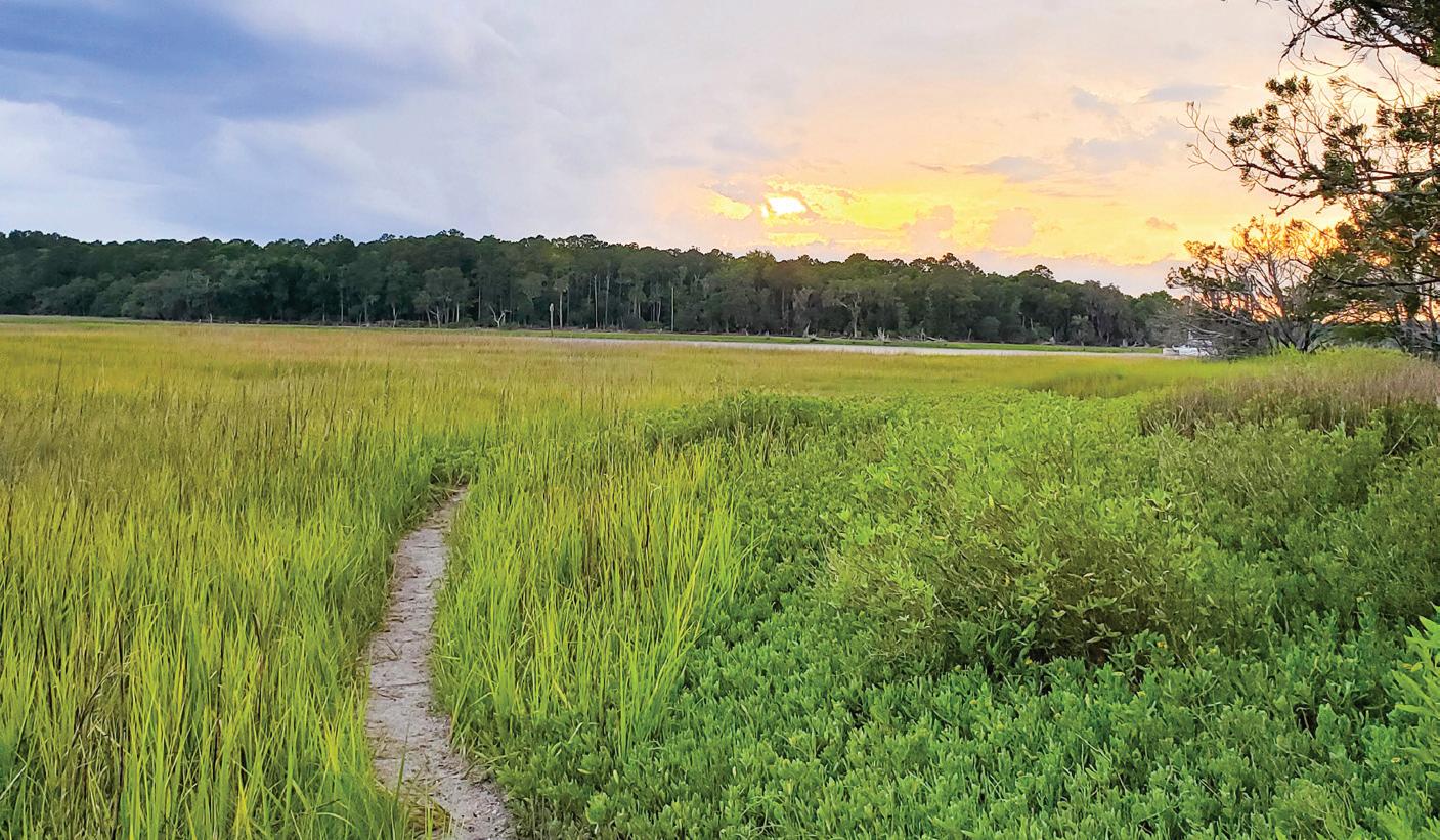 IF BIRDWATCHING DOESN'T PIQUE YOUR INTEREST , there’s plenty of other wildlife you can watch for including deer, fiddler crabs, egrets, and more. Take a stroll on one of the many hiking trails including its boardwalks which wind through a lush maritime forest and salt marsh. Bikes are welcome as well, making it the perfect spot to take in the scenery and see the entirety of the park. The boardwalks and level trails are ADA-accessible for hiking, so every visitor can experience the park’s attributes. Another accessible feature of the park is that they offer reservations for colored blind glasses which is a part of an initiative by the Georgia Department of Natural Resources’ Outdoors Beyond Barriers. This program ensures all visitors can enjoy all of the park’s features, especially those with visual impairment.