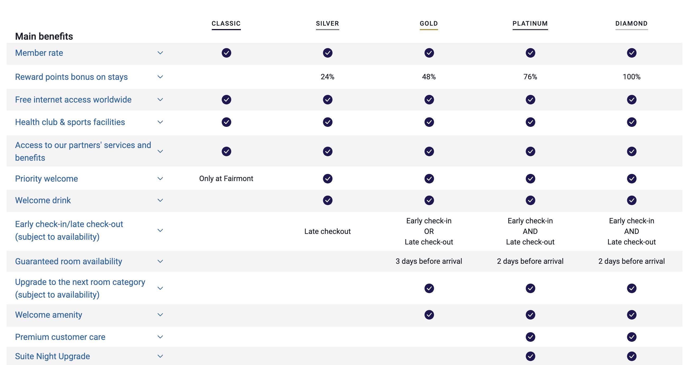 Depending on the number of nights stayed or points earned, your status is upgraded, unlocking even more benefits.