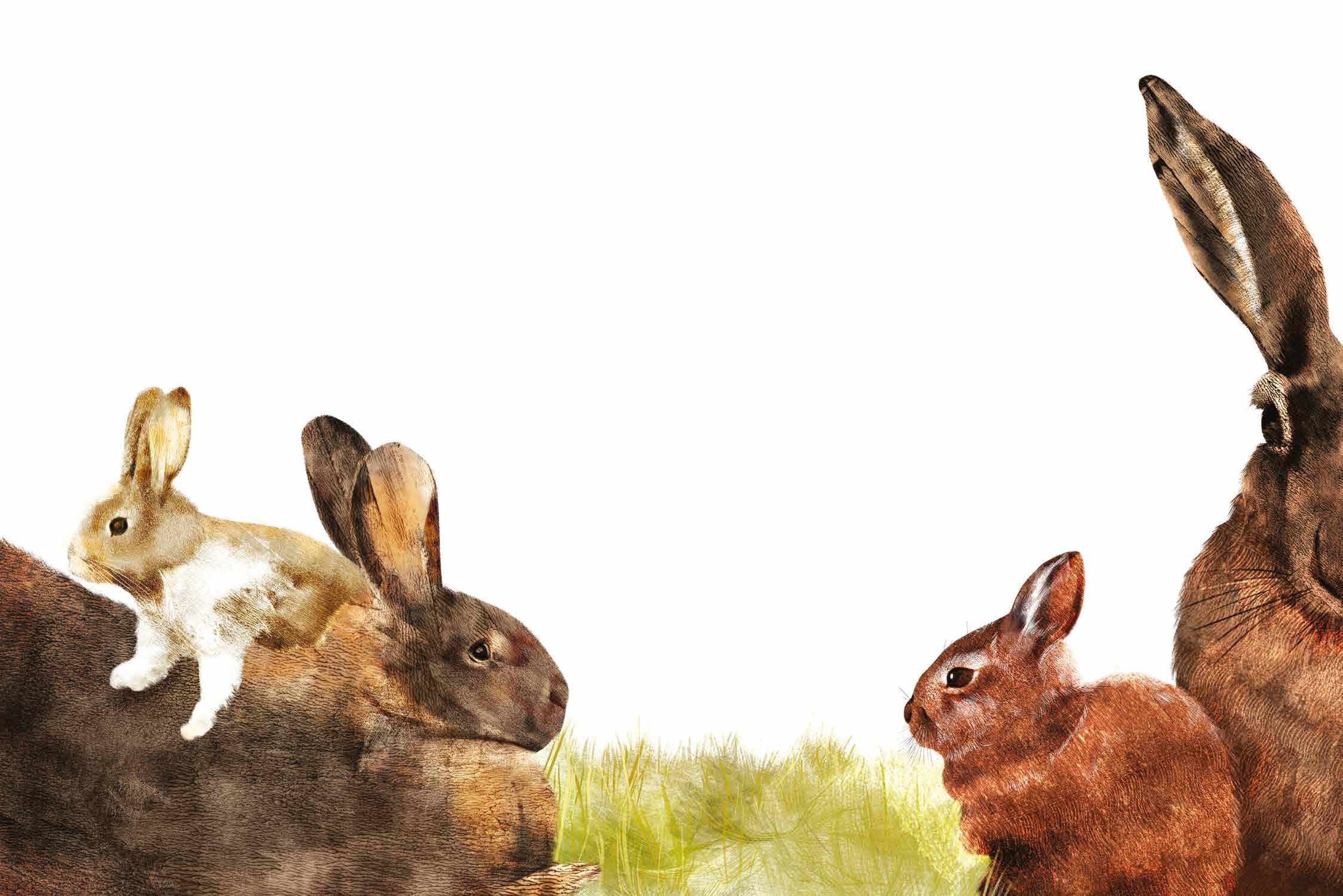 It can be very difficult to distinguish a hare from a wild rabbit; they look so similar at first glance. Even their babies are quite similar, but whilst hares are born in the open air, in the grass, little rabbits are born in warrens dug out of the earth. This difference in habitat has changed the way they grow.
